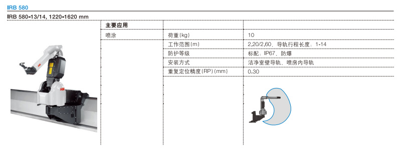 4.高精度,高效率 - ABB 的中空手腕技術、集成過程系統和 ABB的 bell 技術。靈活性增強 - 兩種長度的手臂和靈活的噴涂工藝解決方案。生產率提高 - 快速安裝和較長正常運行時間加上 ABB 高效軟件工具和完美的控制技術。